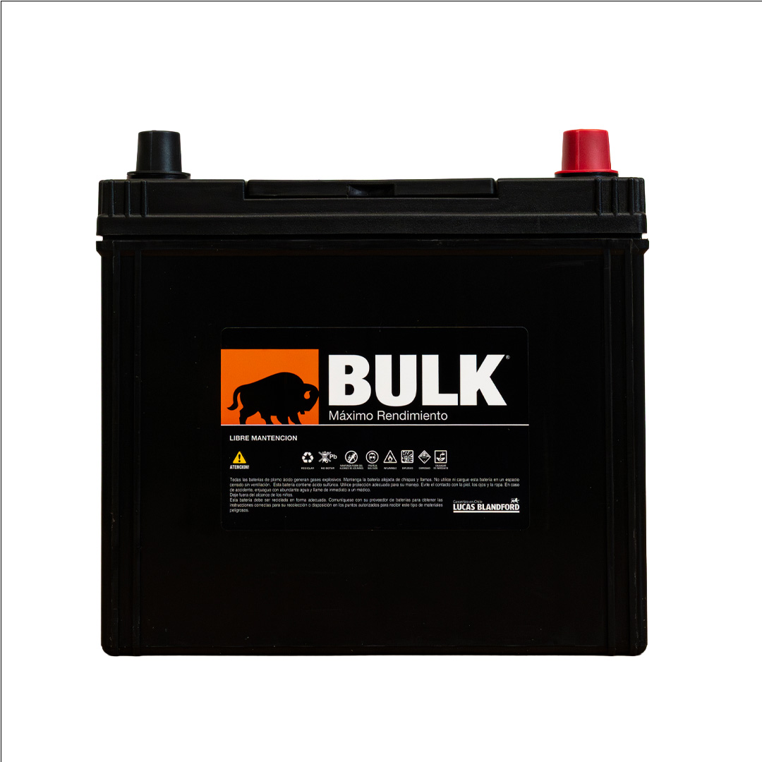Las baterias BULK Máximo Rendimiento son altamente confiables, producidas en Corea del Sur con tecnológía avanzada y altos estandares de calidad garatizando asi la máxima duracion. El metal interno plomo calcio libre de óxido proporciona una excelente resistencia al calor y fuerte inmunidad contra cambios drasticos de temperatura, tiene mayor resistencia a la vibracion. Es un producto 100% libre de mantenimiento que no necesita relleno de soluciones electroliticas. Cuenta con una camara de reciclaje de gases asi como tambien de un visor de carga.