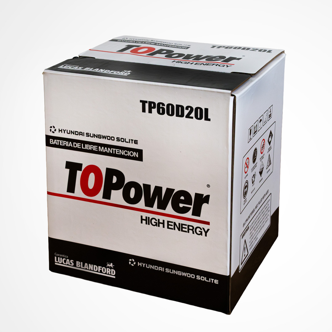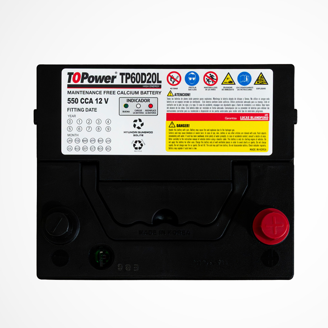 To Power High Energy son baterías de libre mantenimiento producidas con aleación plomo – plata – calcio en las mejores fábricas de Corea del Sur, las cuales manufacturan equipo original de HYUNDAI, KIA, SANGYONG, MITSUBISHI, CHEVROLET y VW. La capacidad instalada de nuestros proveedores es de 26 millones de acumuladores anuales, razón por la cual mantienen tecnología de punta, garantizando la calidad de nuestro producto y un inmejorable ciclo de vida. Nuestras baterías cuentan con certificación SAE, garantizando valores reales de CCA, CA, RC, C20, dentro de los más conocidos.