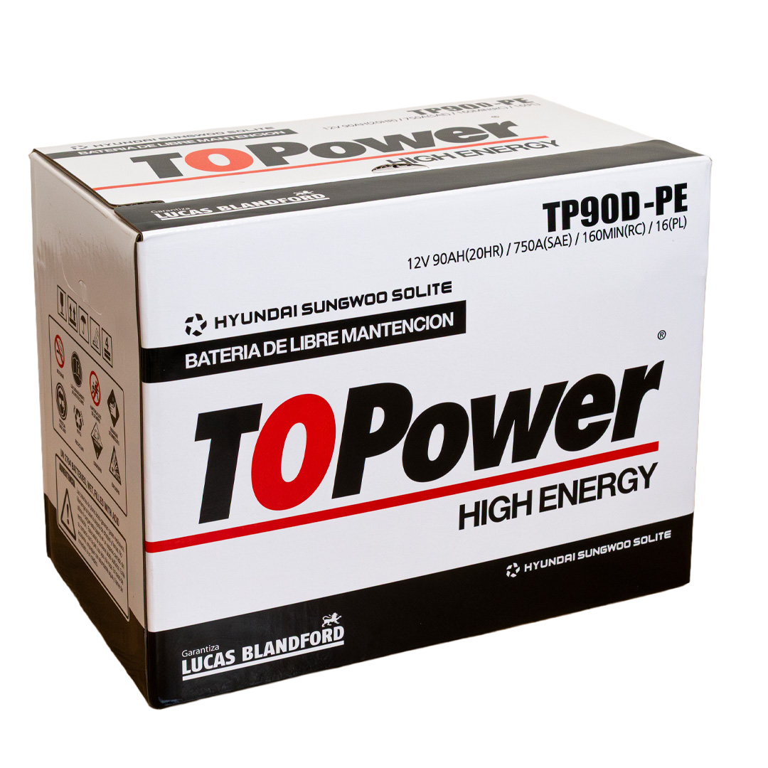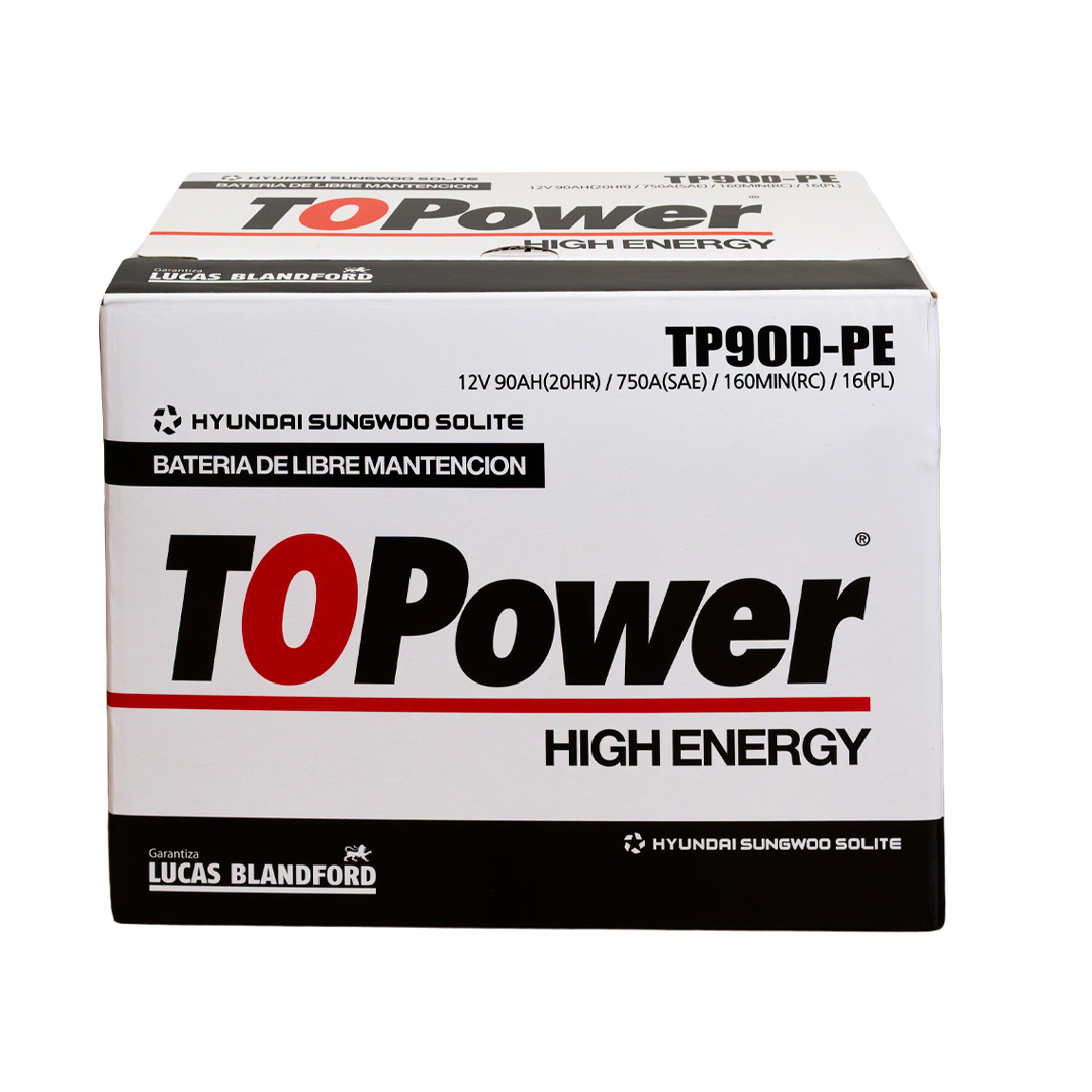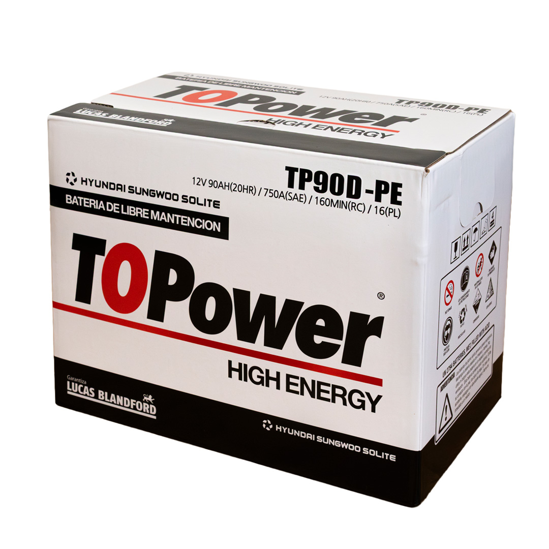To Power High Energy son baterías de libre mantenimiento producidas con aleación plomo – plata – calcio en las mejores fábricas de Corea del Sur, las cuales manufacturan equipo original de HYUNDAI, KIA, SANGYONG, MITSUBISHI, CHEVROLET y VW. La capacidad instalada de nuestros proveedores es de 26 millones de acumuladores anuales, razón por la cual mantienen tecnología de punta, garantizando la calidad de nuestro producto y un inmejorable ciclo de vida. Nuestras baterías cuentan con certificación SAE, garantizando valores reales de CCA, CA, RC, C20, dentro de los más conocidos.