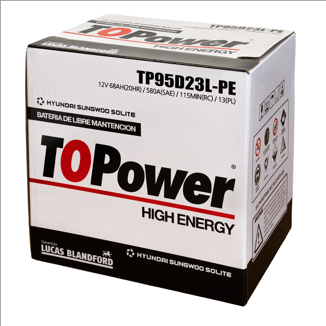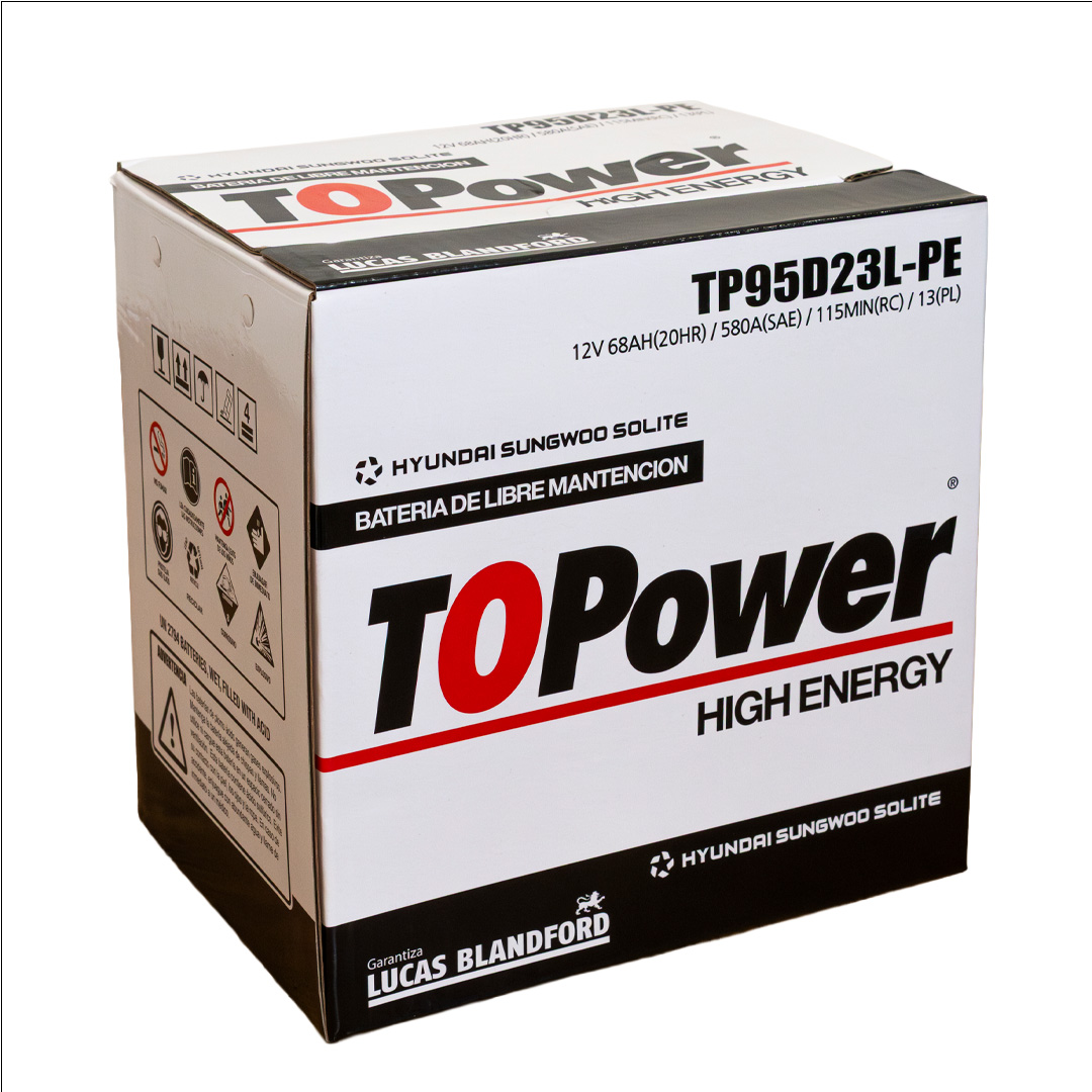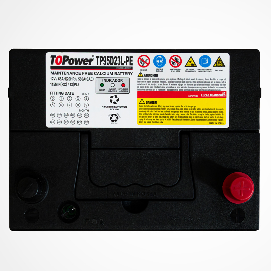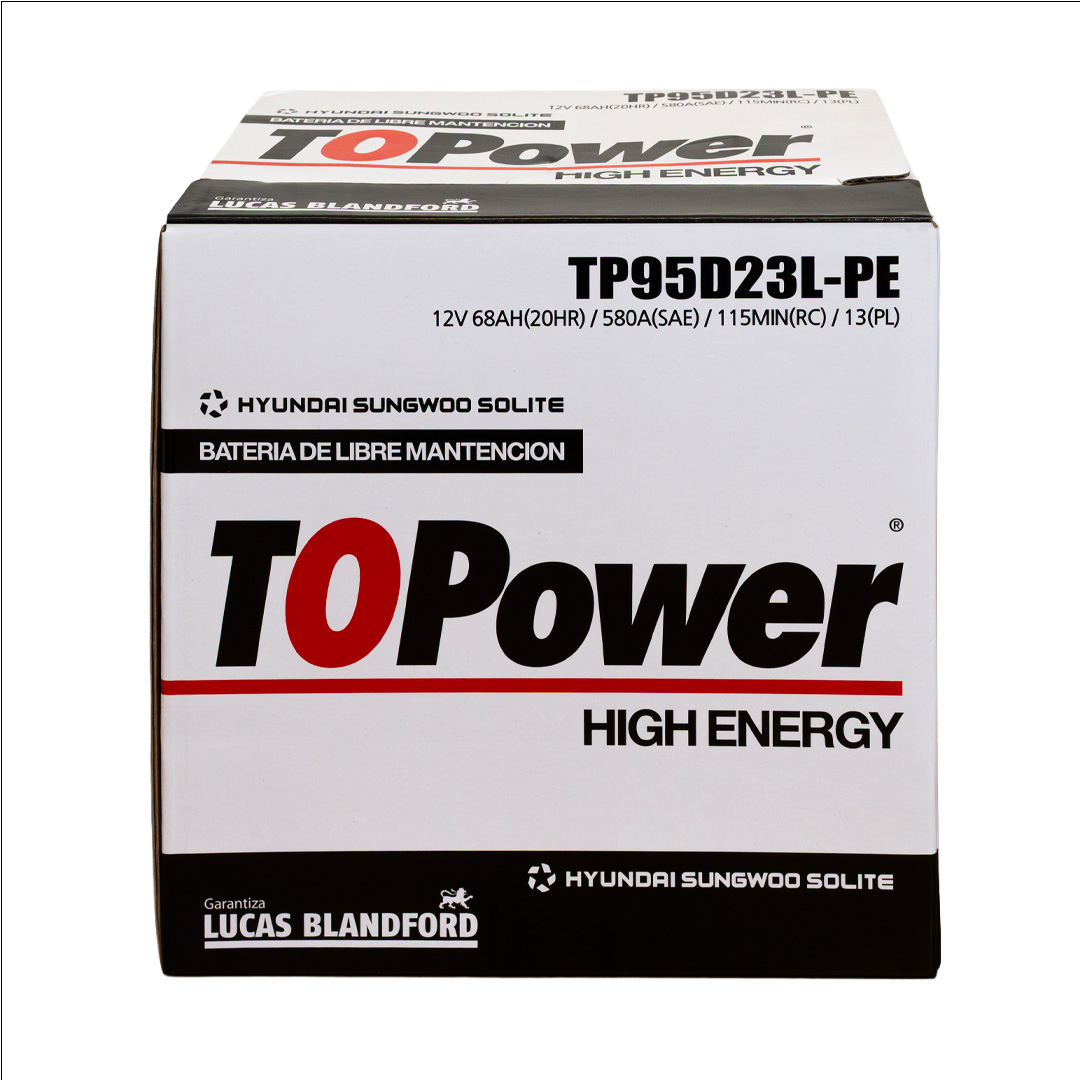 To Power High Energy son baterías de libre mantenimiento producidas con aleación plomo – plata – calcio en las mejores fábricas de Corea del Sur, las cuales manufacturan equipo original de HYUNDAI, KIA, SANGYONG, MITSUBISHI, CHEVROLET y VW. La capacidad instalada de nuestros proveedores es de 26 millones de acumuladores anuales, razón por la cual mantienen tecnología de punta, garantizando la calidad de nuestro producto y un inmejorable ciclo de vida. Nuestras baterías cuentan con certificación SAE, garantizando valores reales de CCA, CA, RC, C20, dentro de los más conocidos.