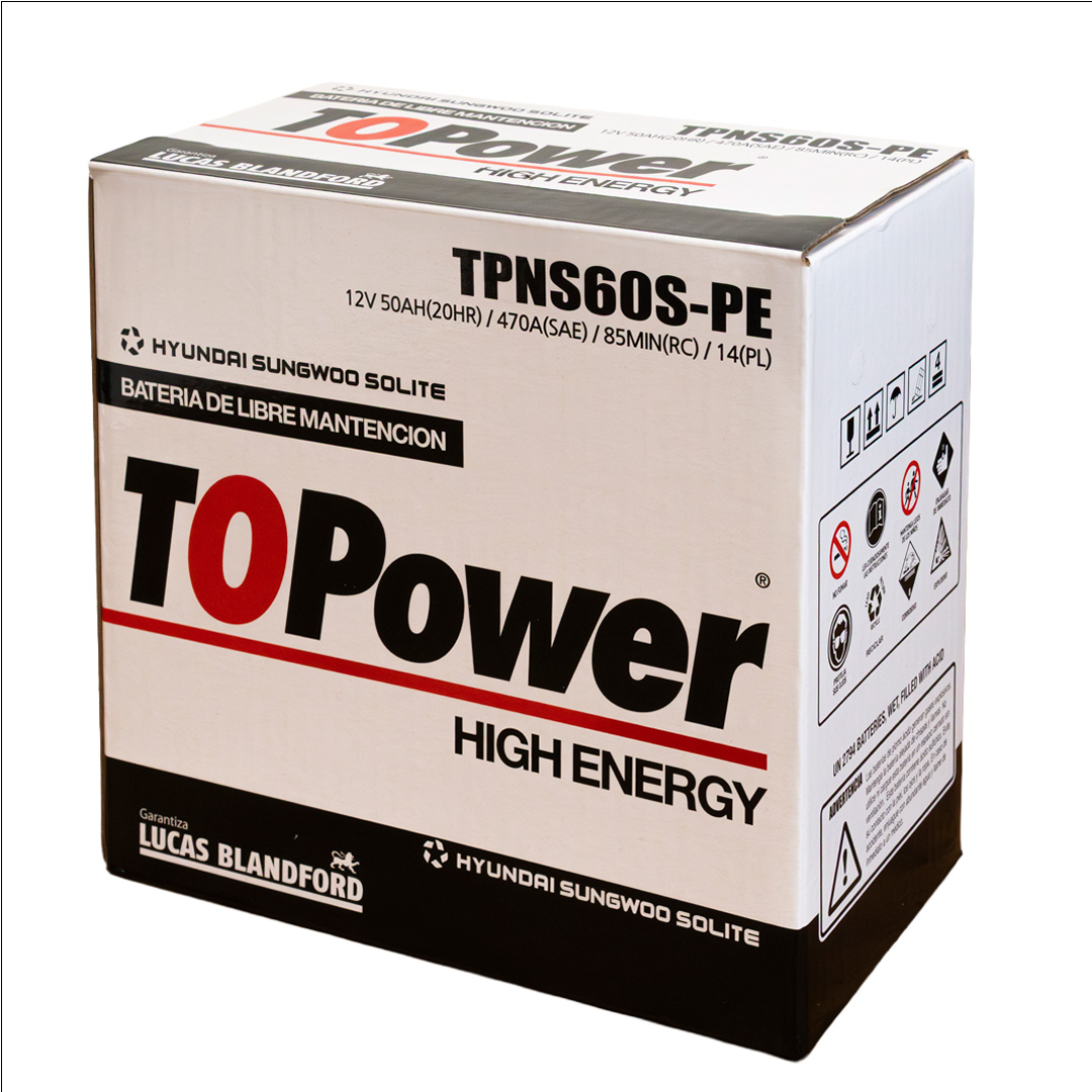 To Power High Energy son baterías de libre mantenimiento producidas con aleación plomo – plata – calcio en las mejores fábricas de Corea del Sur, las cuales manufacturan equipo original de HYUNDAI, KIA, SANGYONG, MITSUBISHI, CHEVROLET y VW. La capacidad instalada de nuestros proveedores es de 26 millones de acumuladores anuales, razón por la cual mantienen tecnología de punta, garantizando la calidad de nuestro producto y un inmejorable ciclo de vida. Nuestras baterías cuentan con certificación SAE, garantizando valores reales de CCA, CA, RC, C20, dentro de los más conocidos.