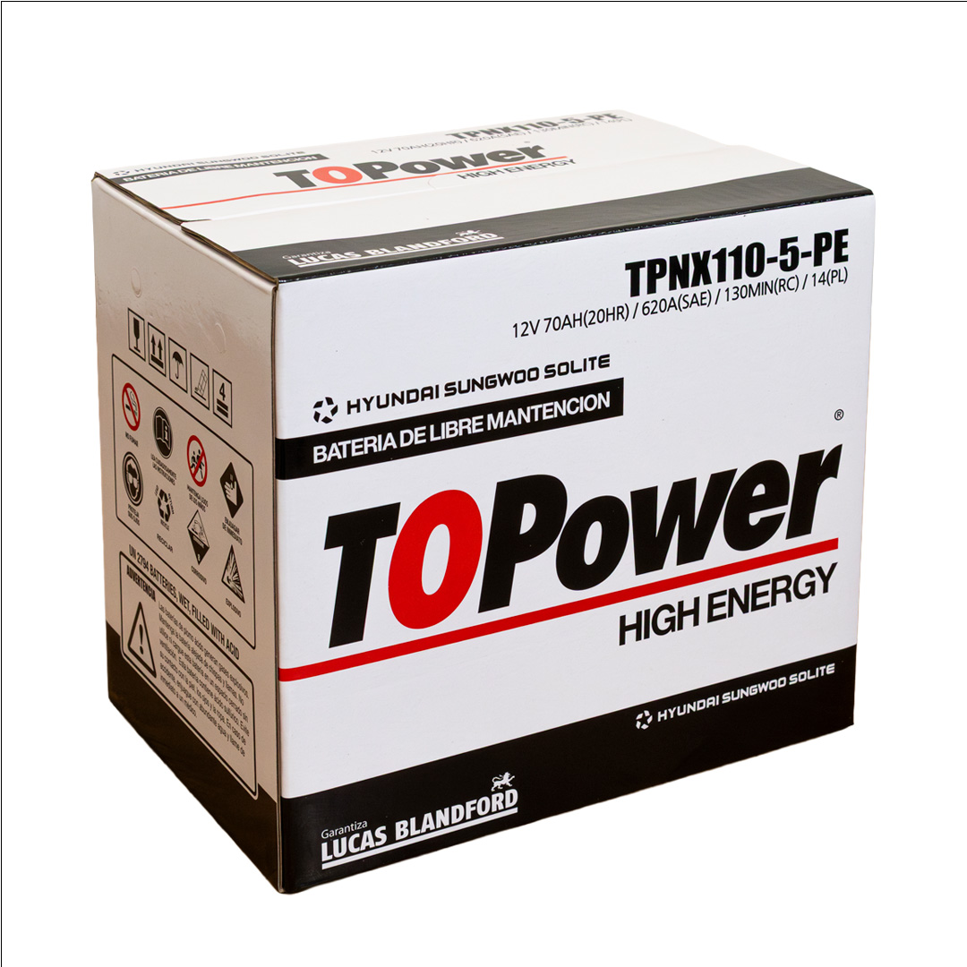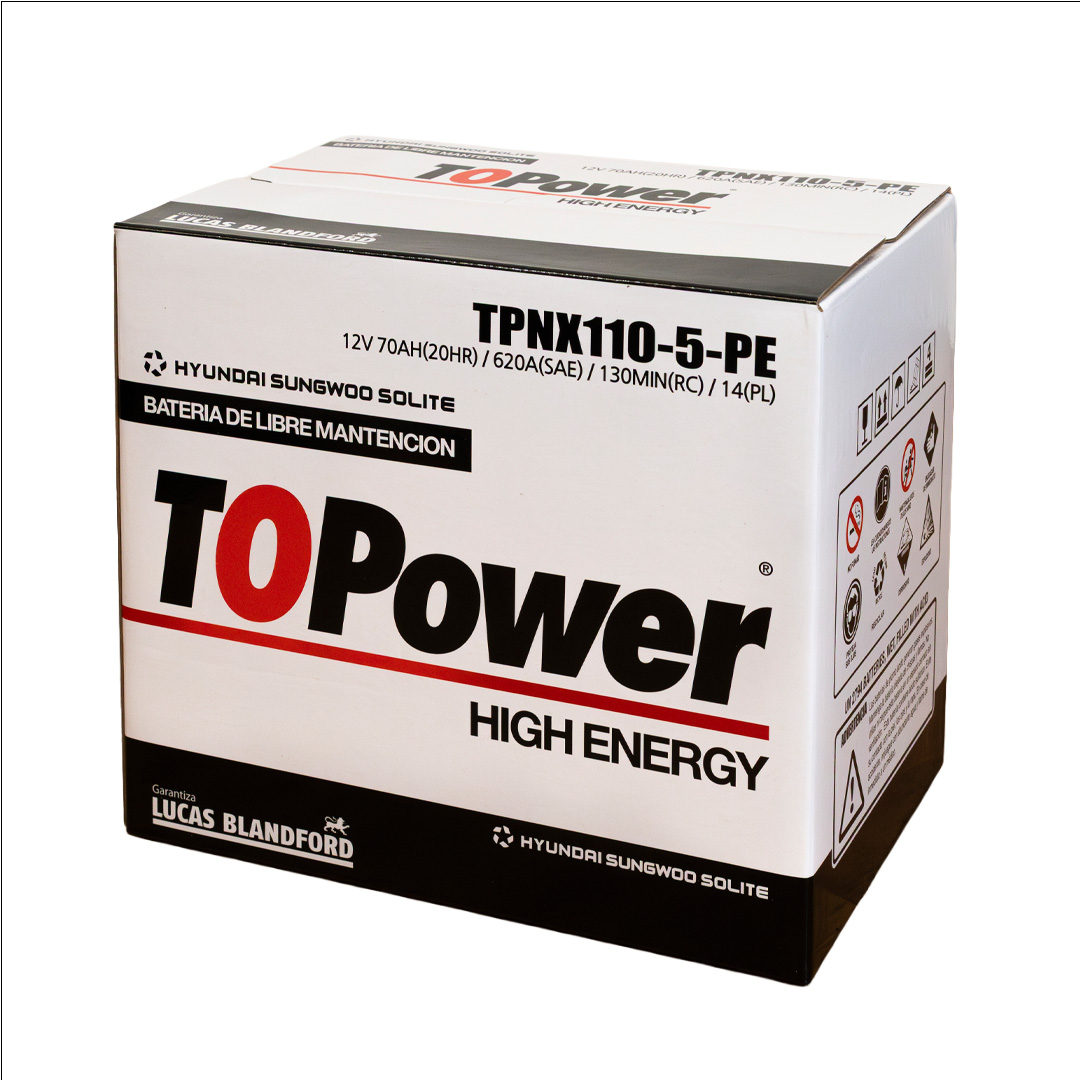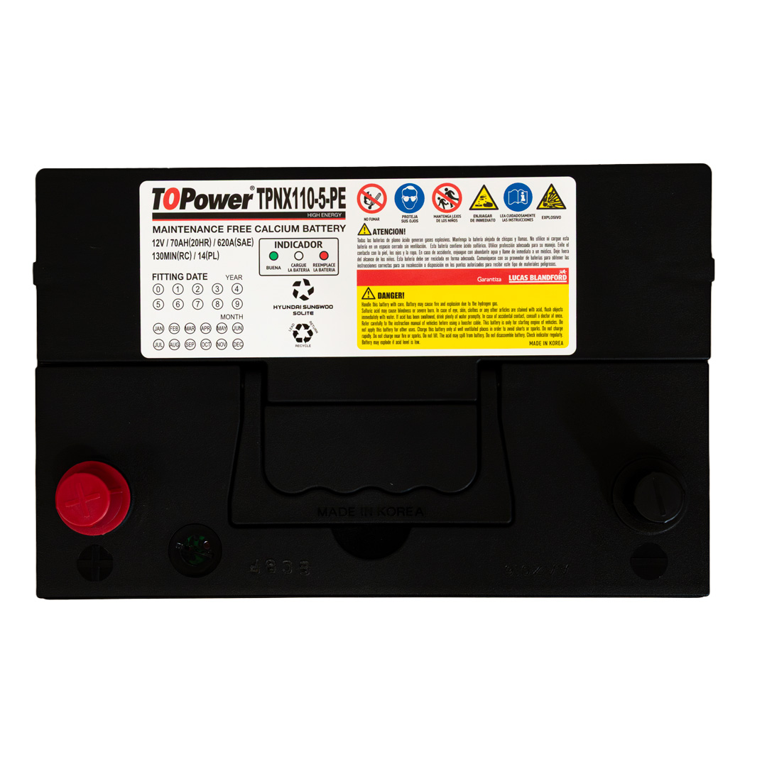 To Power High Energy son baterías de libre mantenimiento producidas con aleación plomo – plata – calcio en las mejores fábricas de Corea del Sur, las cuales manufacturan equipo original de HYUNDAI, KIA, SANGYONG, MITSUBISHI, CHEVROLET y VW. La capacidad instalada de nuestros proveedores es de 26 millones de acumuladores anuales, razón por la cual mantienen tecnología de punta, garantizando la calidad de nuestro producto y un inmejorable ciclo de vida. Nuestras baterías cuentan con certificación SAE, garantizando valores reales de CCA, CA, RC, C20, dentro de los más conocidos.
